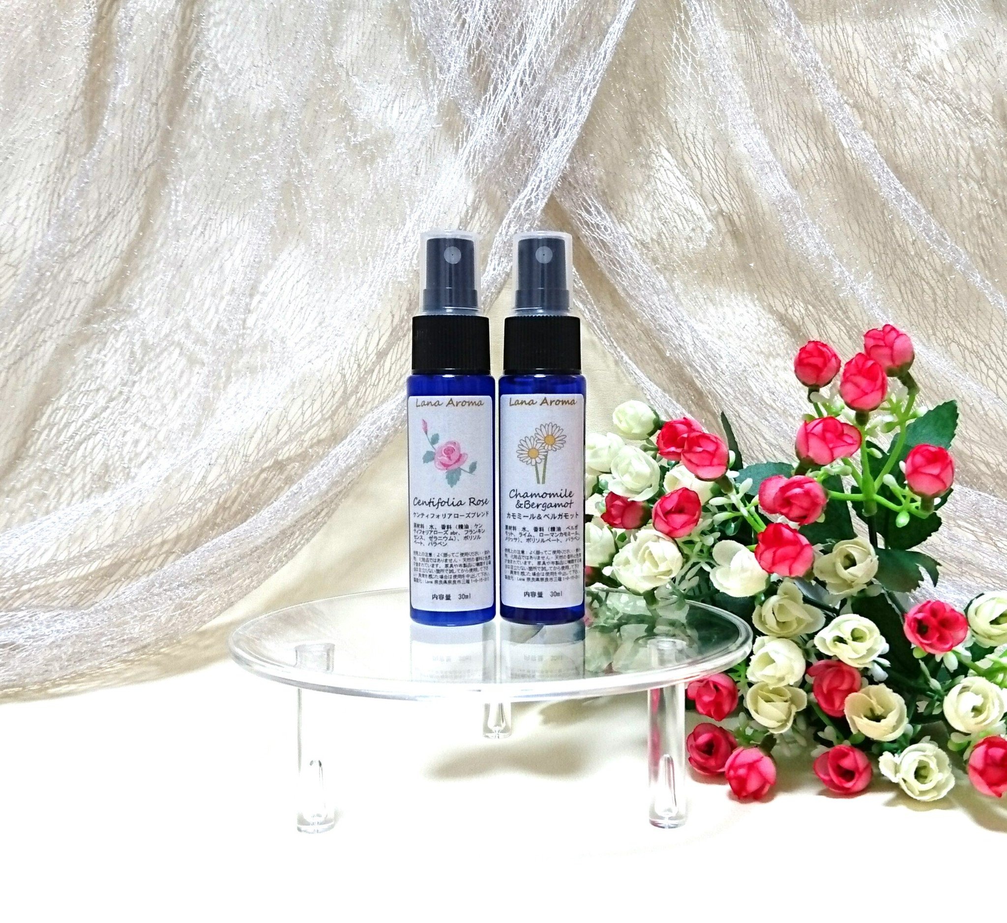 ローズは気持ちを盛り上げたいとき、カモミールは心を解したいときに使っていただきたい香りです。